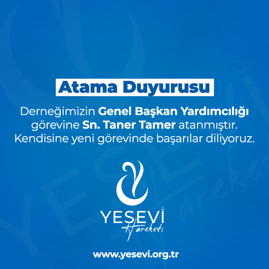 YESEVİ Hareketi olarak Sn. Taner Tamer’e yeni görevinde başarılar diliyor, bu atamanın camiamız için hayırlı olmasını temenni ediyoruz.