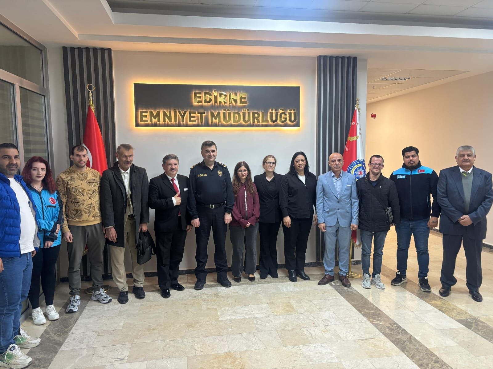 Polis Haftası ve Türk Polis Teşkilatı'nın Kuruluş Yıldönümü münasebetiyle, Yesevi Hareketi Derneği Edirne İl Başkanımız Alpaslan Cankaloğlu, Yesevi Arama Kurtarma (YAK) Ekip Liderimiz Sadık Bektaş ve arama kurtarma ekip üyelerimiz; Spor Birimi, Engelliler Birimi, Kadın Kolları ile Sosyal Faaliyetler ve Halkla İlişkiler Birimi başkanlarımızla birlikte Edirne İl Emniyet Müdürlüğü’nü ziyaret etti.