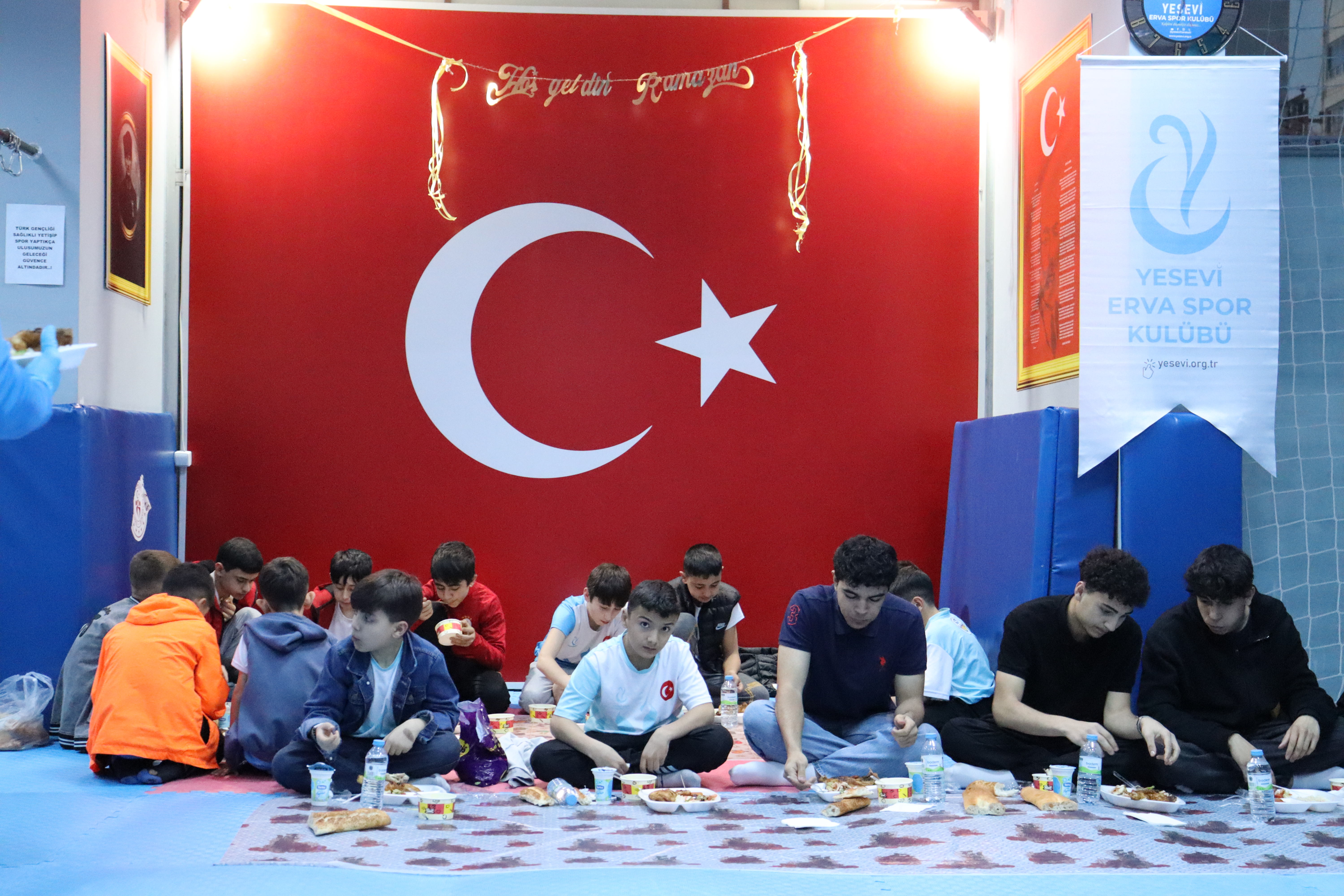 Sporcularımız ve antrenörlerimizle birlikte iftar sofrasında bir araya geldik. Genel Başkanımız Mahmut Cömert ve heyetinin de katılım sağladığı programda, Ramazan’ın birlik ve bereketini hep birlikte paylaştık.
